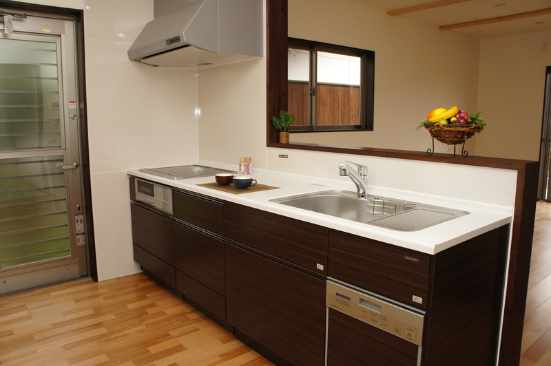 お施主様が用意された、手洗い器を設置致しました。カウンターは大工さんの手作り(^^)♪