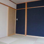一面を紺色のクロスで貼り分けし、アクセントに。